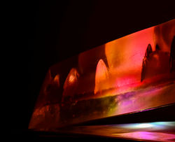 Luz directa desde el fondo de la pieza que resalta la belleza de la fragilidad y el color.